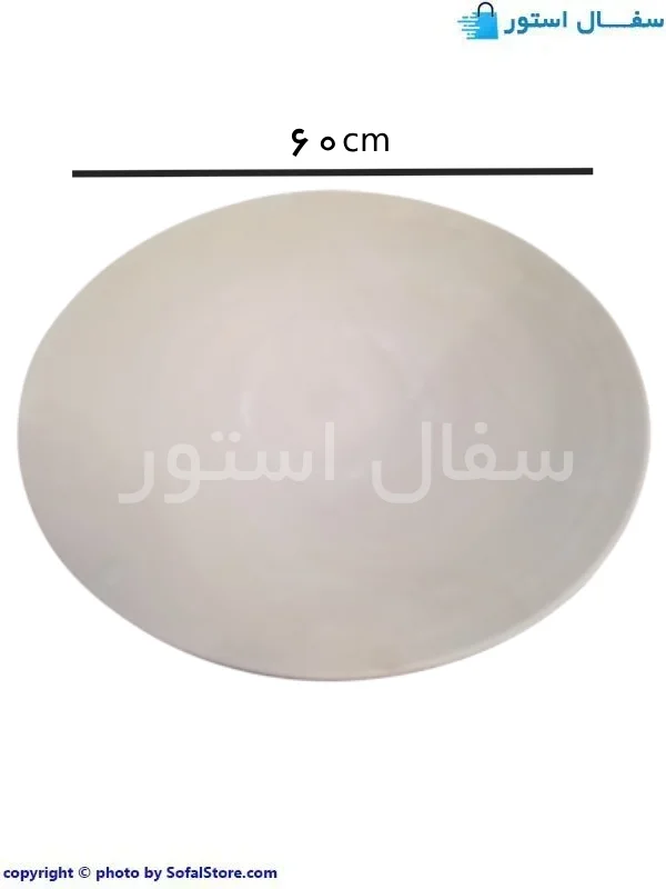 بشقاب سفالی خام با قطر ۶۰ سانتیمتر از محصولات باکیفیت برند معتبر سفال استور است. این بشقاب از خاک رس طبیعی ساخته شده و در مرحله خام (پخت نشده، بدون رنگ و لعاب) عرضه می شود. مناسب برای مراحل بعدی مثل پخت در کوره، لعاب کاری و نقاشی روی سفال است.